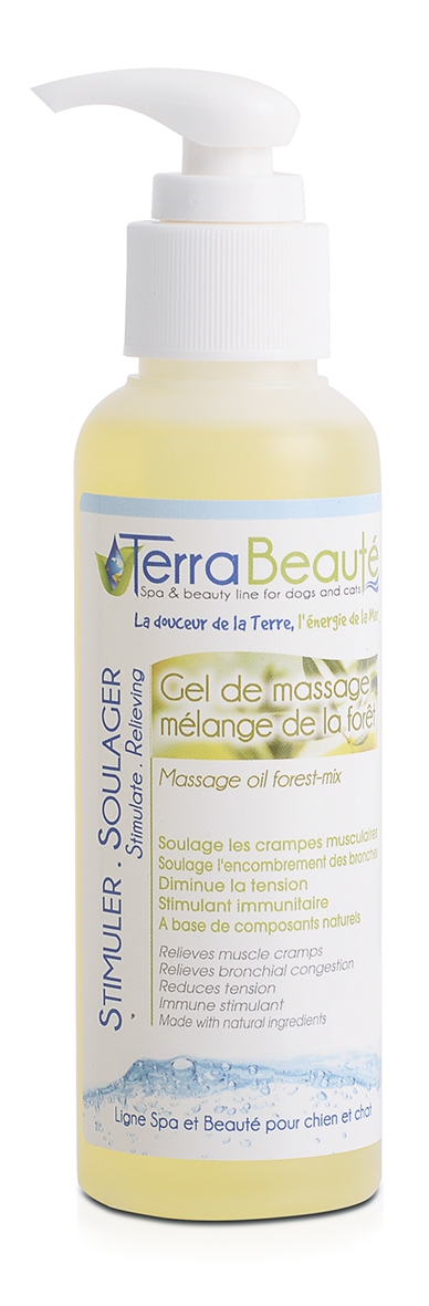 The massage gel with forest-mix for dog and cat is a stimulating mixture. Relieves muscle cramps, bronchial congestion, tension, and other related problems. Immunostimulant. Relieves jealousy and separation anxiety. 120ml.