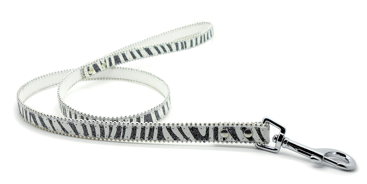 lead zebra fantasy collar decorated with an edging of silver pearls.