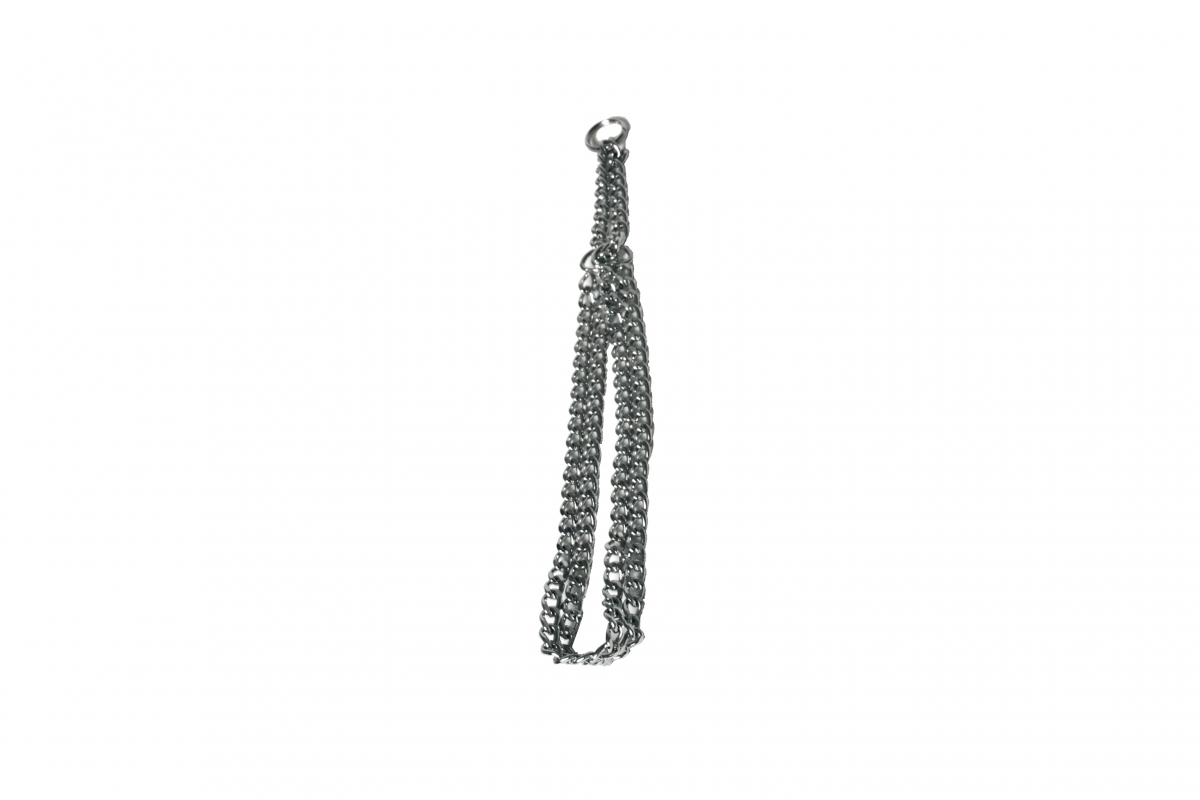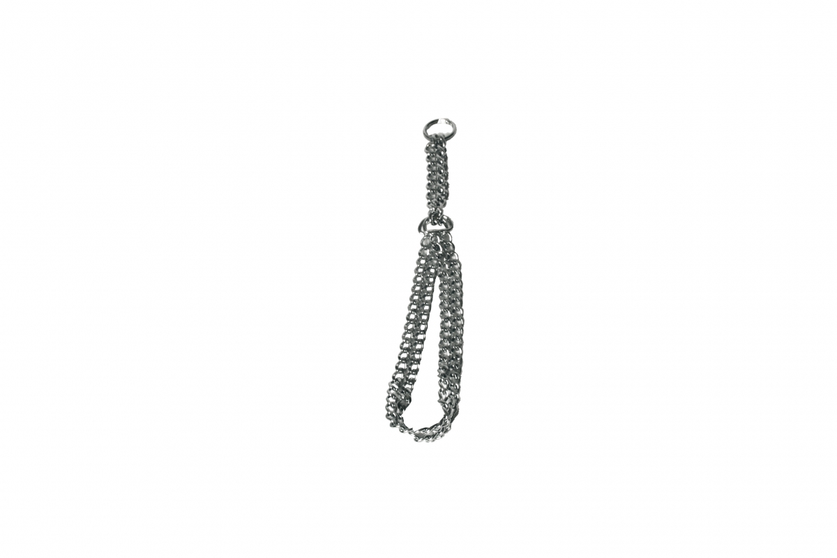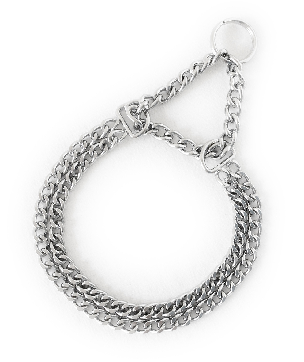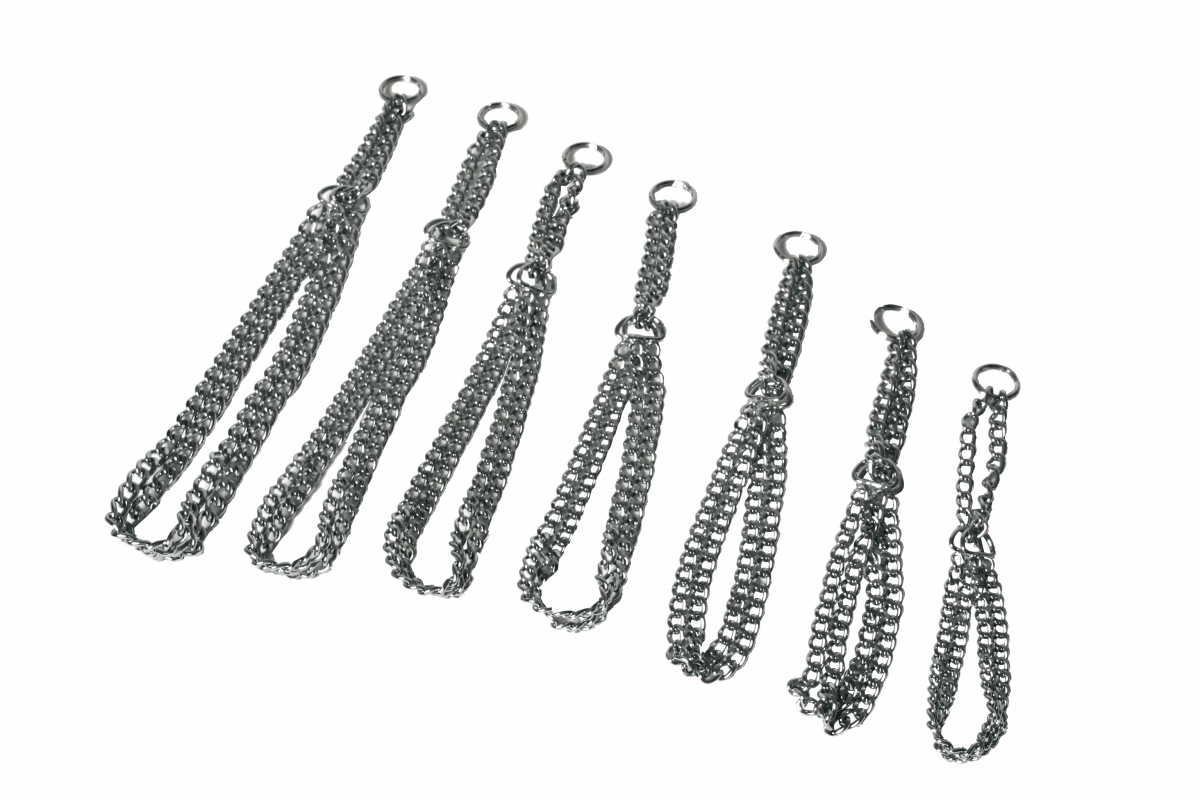 Chrome semi-choke collar. 2 rows. Dimensions: 2,5mm x 35cm (Ø link x measured length of the middle of the rings).