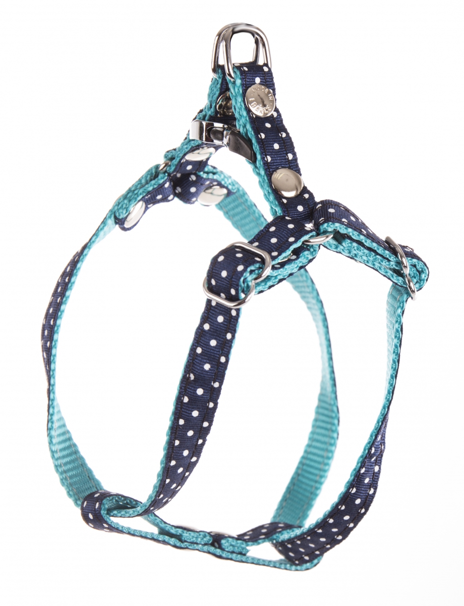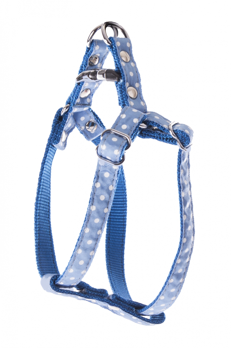 Dog harness - nylon blue peas - Width 15 mm - Lenght from 35 to 45 cm