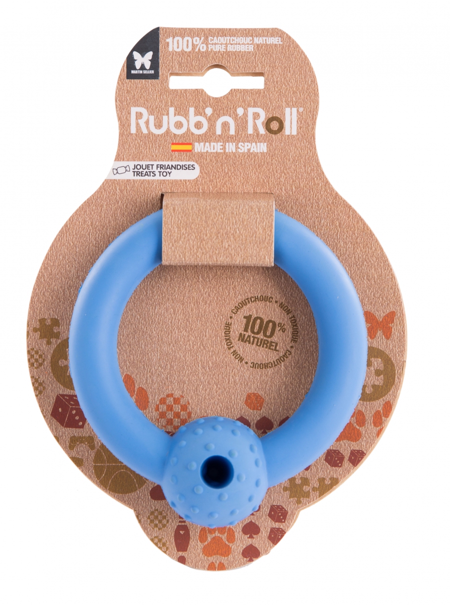 Specific dog ring toy for inserting treats. Satisfies pet's need to play and chew. Made from 100% natural rubber from Hevea. Avoids the risk of intestinal obstruction. Biodegradable and ecological.