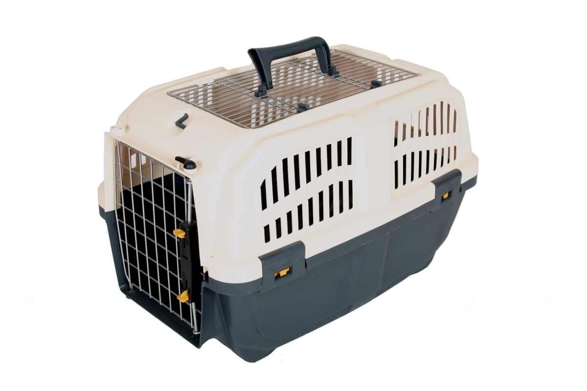 Cage de transport Skudo OPEN. 2 ouvertures : par le côté et par le dessus.