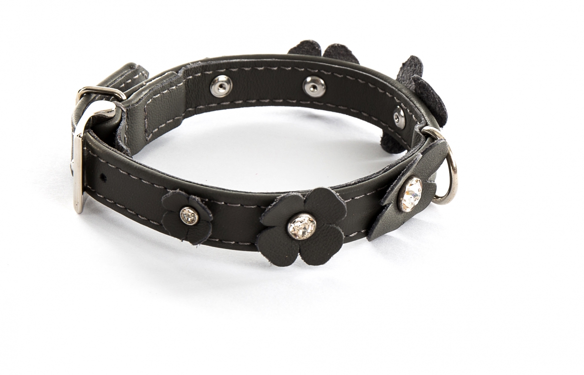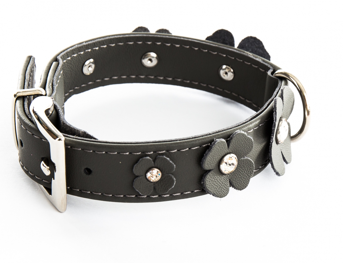 Grey leather collar for dog - Clover leather right - W 14mm L 28cm