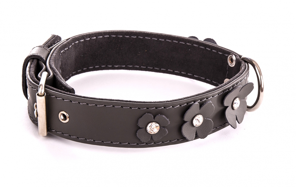 Grey leather collar for dog - Clover leather right - W 31mm L 45cm