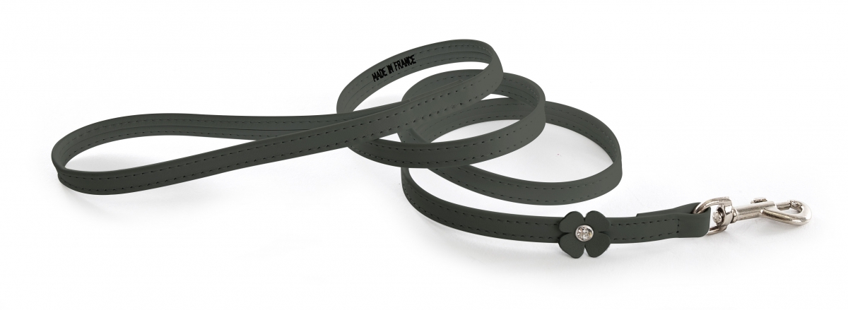 Laisse cuir gris pour chien - cuir fantaisie trèfle peausserie