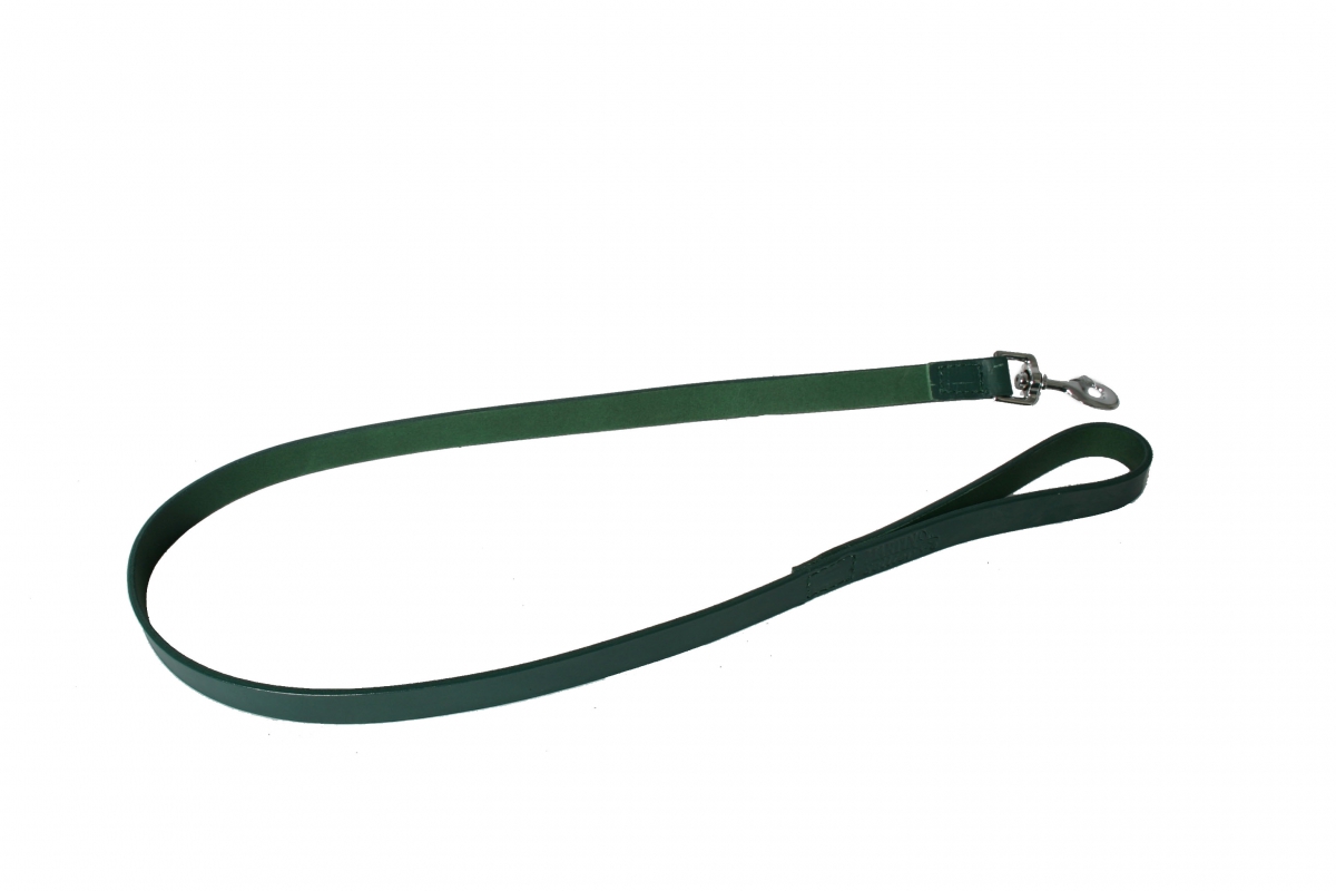 Green leather lead for dog - cut stung franc - W 20mm L 100cm