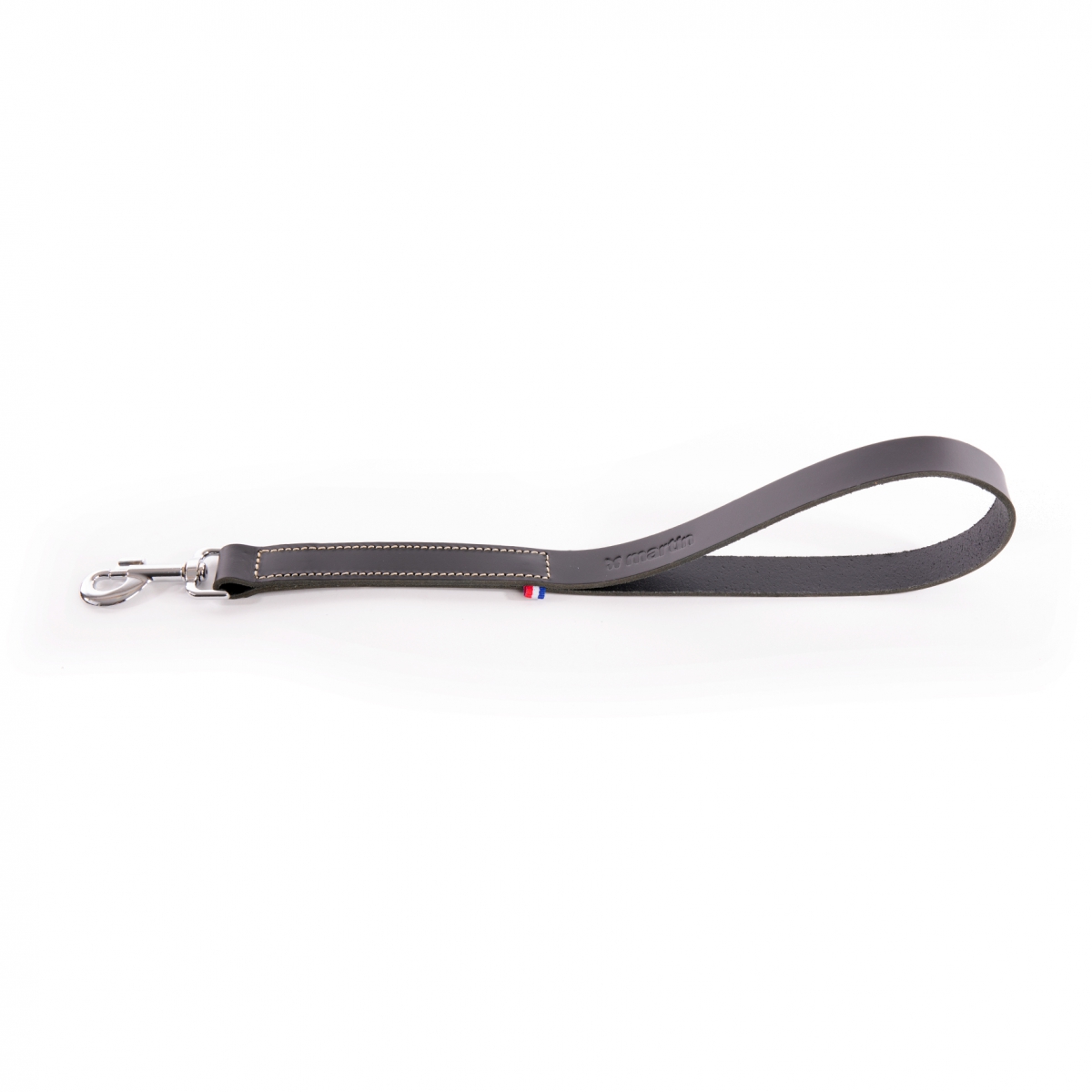 Laisse courte en cuir noir pour chien - coupé franc piqué bico