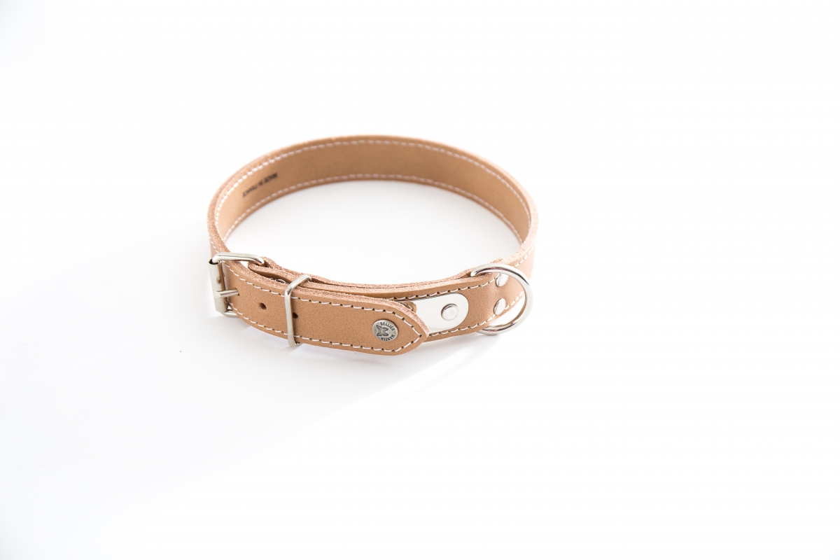 Natural leather dog collar - classic leather stitched with plate - W 26mm L 56cm