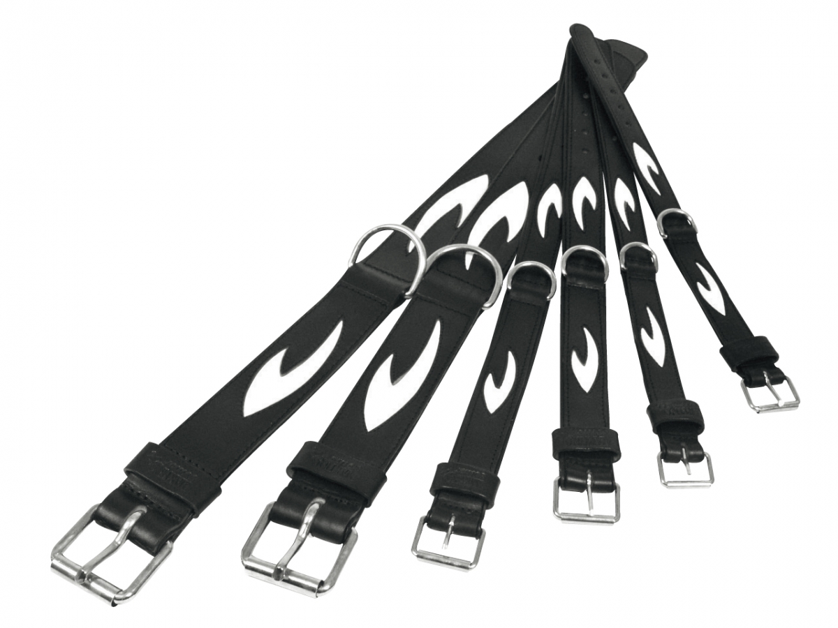 Black leather dog collar. Boomerang collection. Full grain leather. Assembling dive. Metal buckles.
