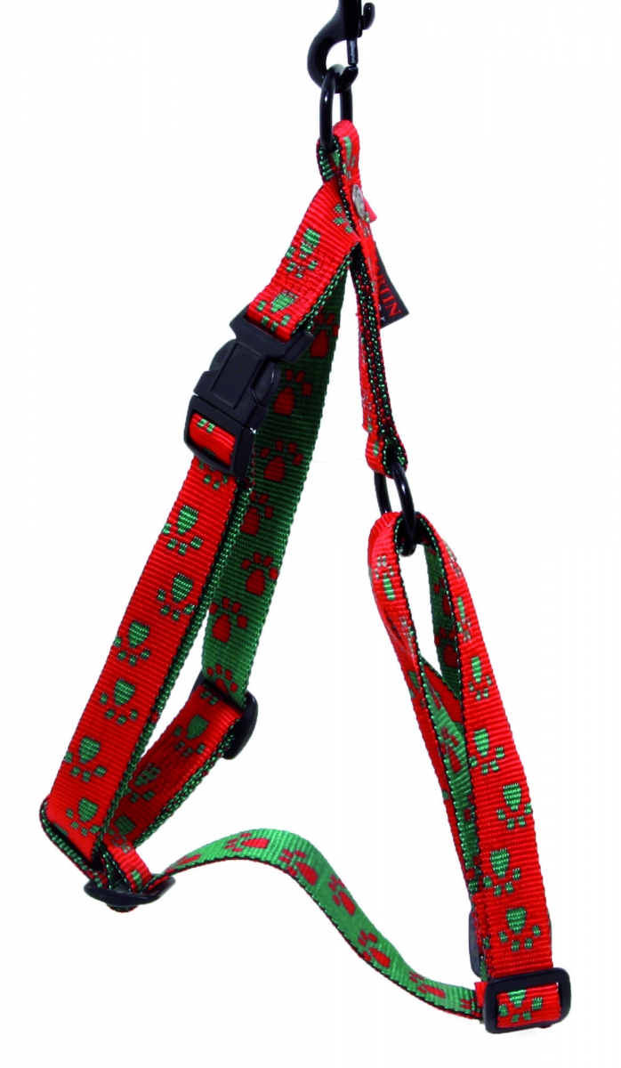 Red green dog harness - original paw - W 16mm L 35 to 50cm