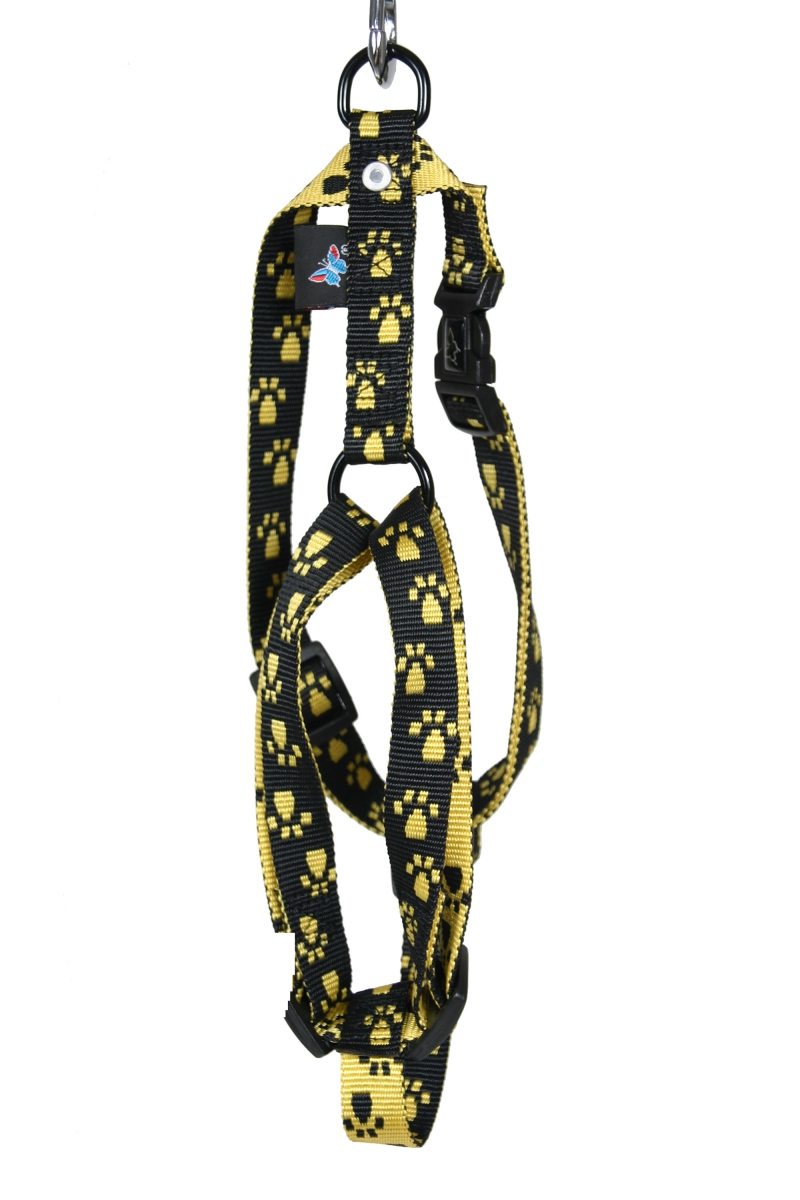 Black yellow dog harness - original paw - W 16mm L 35 to 50cm