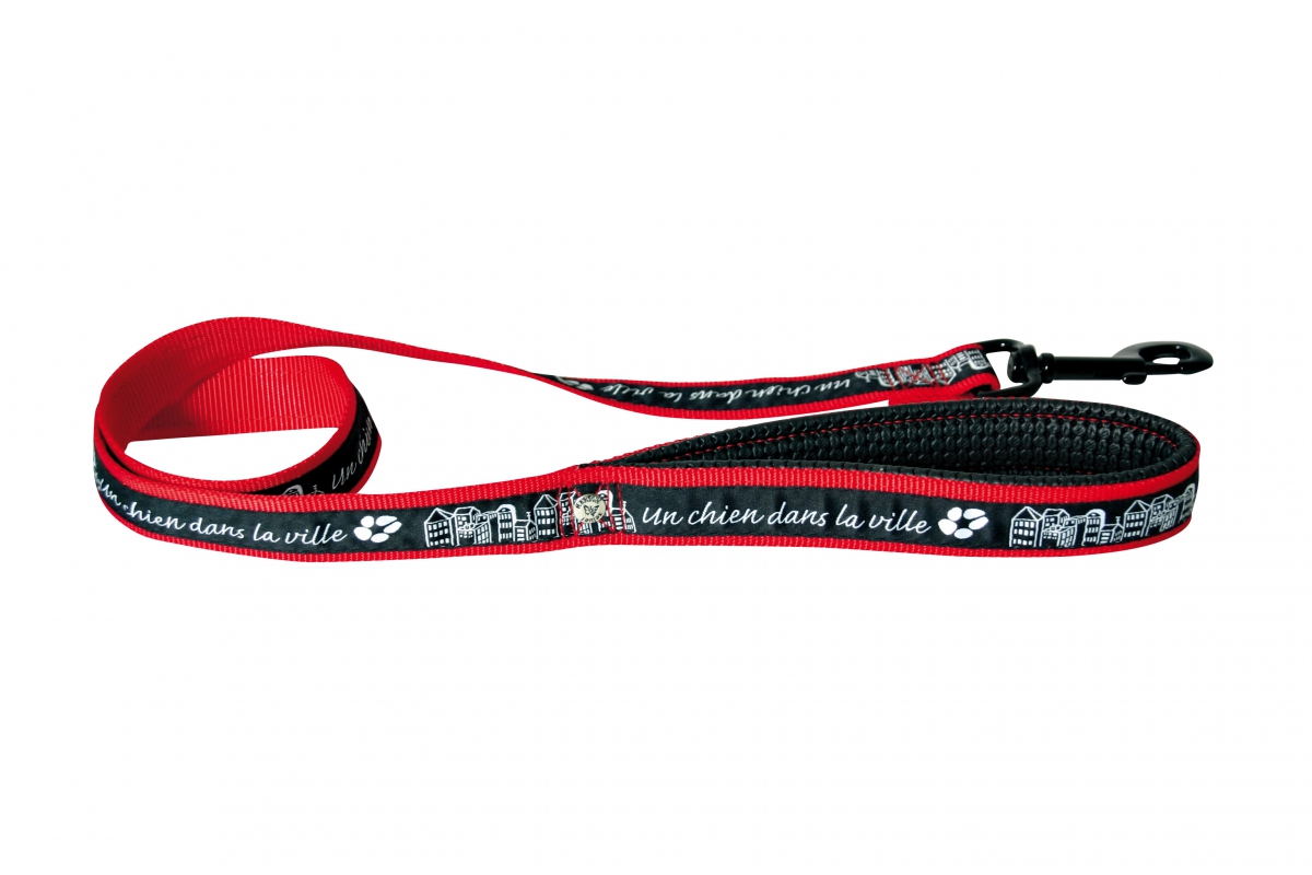 Nylon heel and Design "un chien dans les prés". Black lacquered accessories. Carabin carabiner.