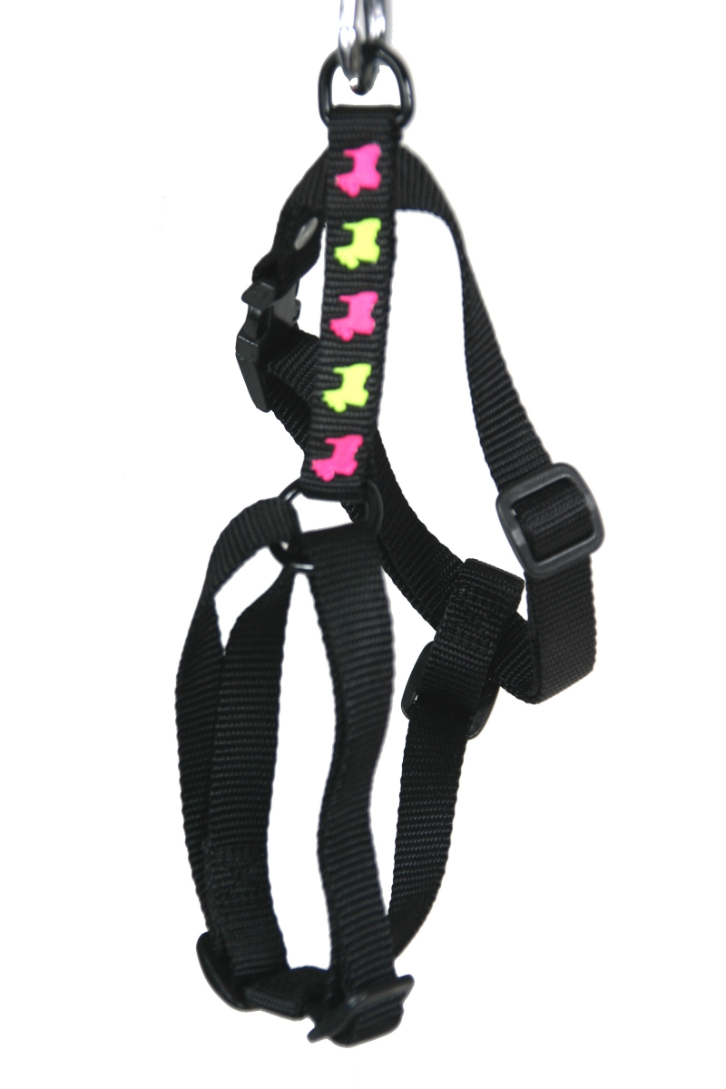 Width 16 mm Length 30 to 50 cm. Nylon dog motifs. Black lacquered accessories. Quick release.