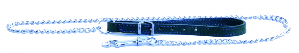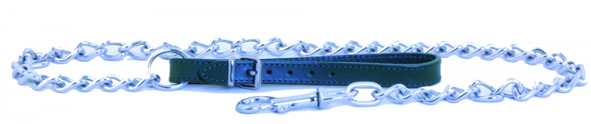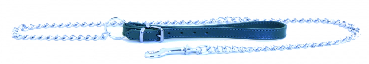 Dog chain lead with handle leather - green - diam 2,5 mm W12mm L100cm