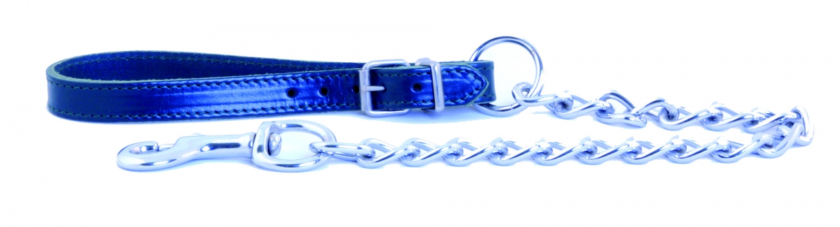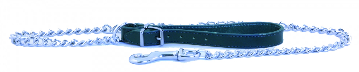 Dog chain lead with handle leather - green - diam 4 mm W16mm L60cm