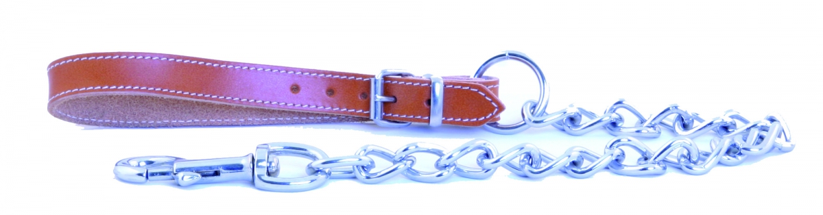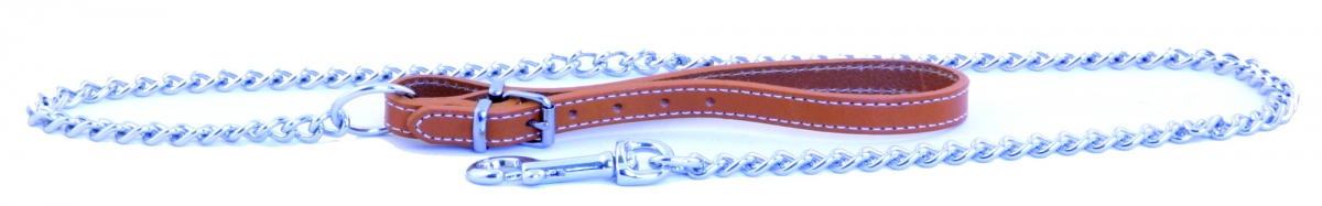 Dog chain lead with handle leather - natural - diam 2,5 mm W12mm L100cm