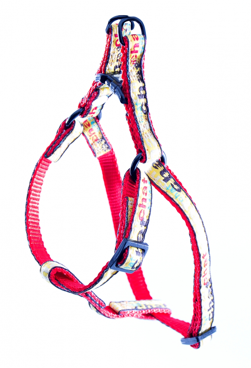 Step in harness for cat - cat pattern - red - W10mm L20 to 35cm