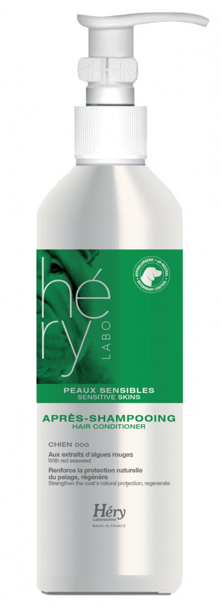 Conditioner for Dogs, Sensitive skin, Héry. Reinforces the coat's natural protection and regenerates. With shea butter.
