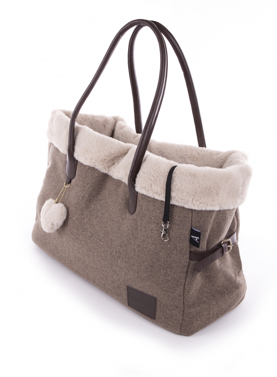 Bag soft, elegant and comfortable. A nice heart-shaped fur pompom for decoration. A very practical format. Folds flat to be stored easily. The straps allow a hand or shoulder. A musket inside to tie the animal. Suitable for curious and comfortable dogs on the move but not suitable for fearful dogs because this bag is closed by magnet