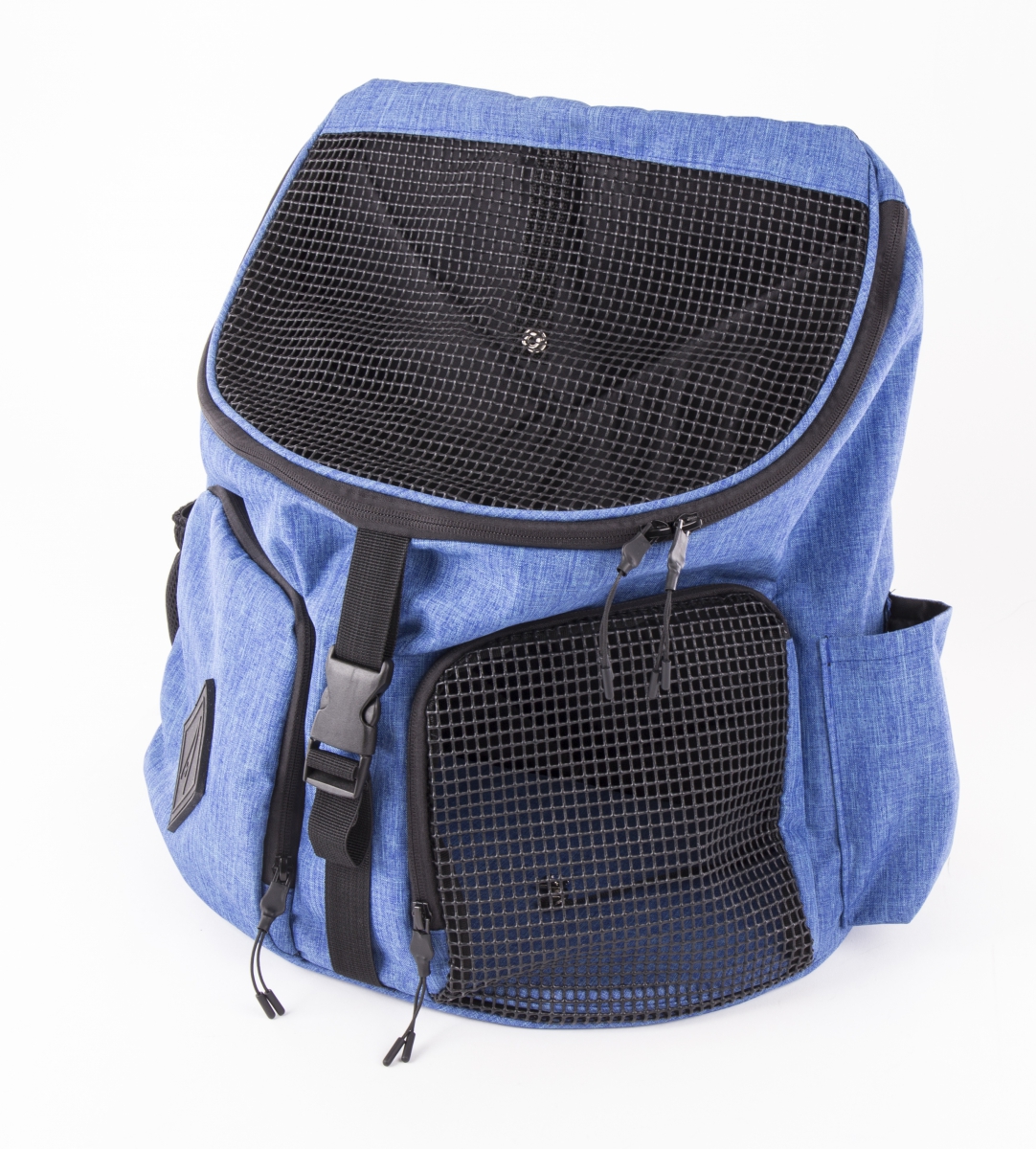 For safety: a solid net, zippers including a double one on the top and activated by a safety buckle, a strap with a carabiner inside to attach to the animal's collar.