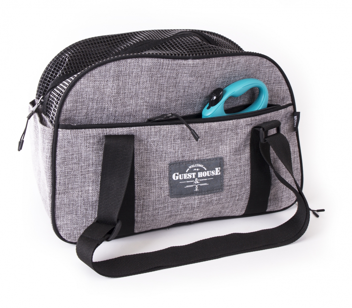 For dogs and cats. Light, well vented and very functional. Folds flat. Double aeration: a large net over the entire length and an opening sided by zip. Large pocket along the entire length, closed by a zip and a pocket on the side to store the leash or water bottle. Adjustable straps, from 60 to 125 cm so 3 possible litters: hand, shoulder or shoulder strap. Rigid and removable bottom. An inner carabiner to tie the animal.