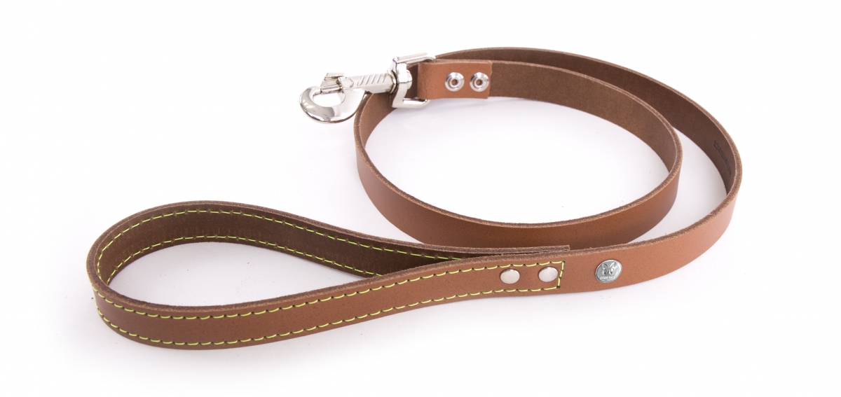 FLASH straight cut leather leash and neon seam - Cognac and yellow