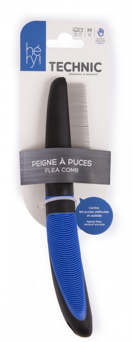 Flea comb to detect and get rid of fleas present on the animal. Also removes dirt and dandruff. 69 teeth.
