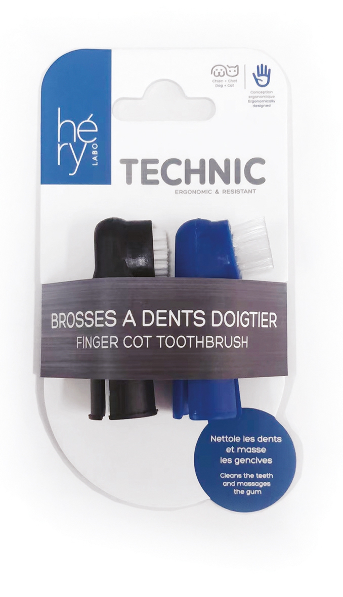 Fingertip toothbrushes prevent the formation of dental plaque responsible for bad breath, and prevent the appearance of tartar. Synthetic bristle head for brushing and silicone head for gum massage.