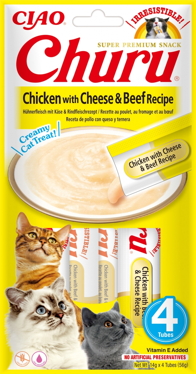 See the descriptionINABA Churu recipe with chicken, cheese and beef.