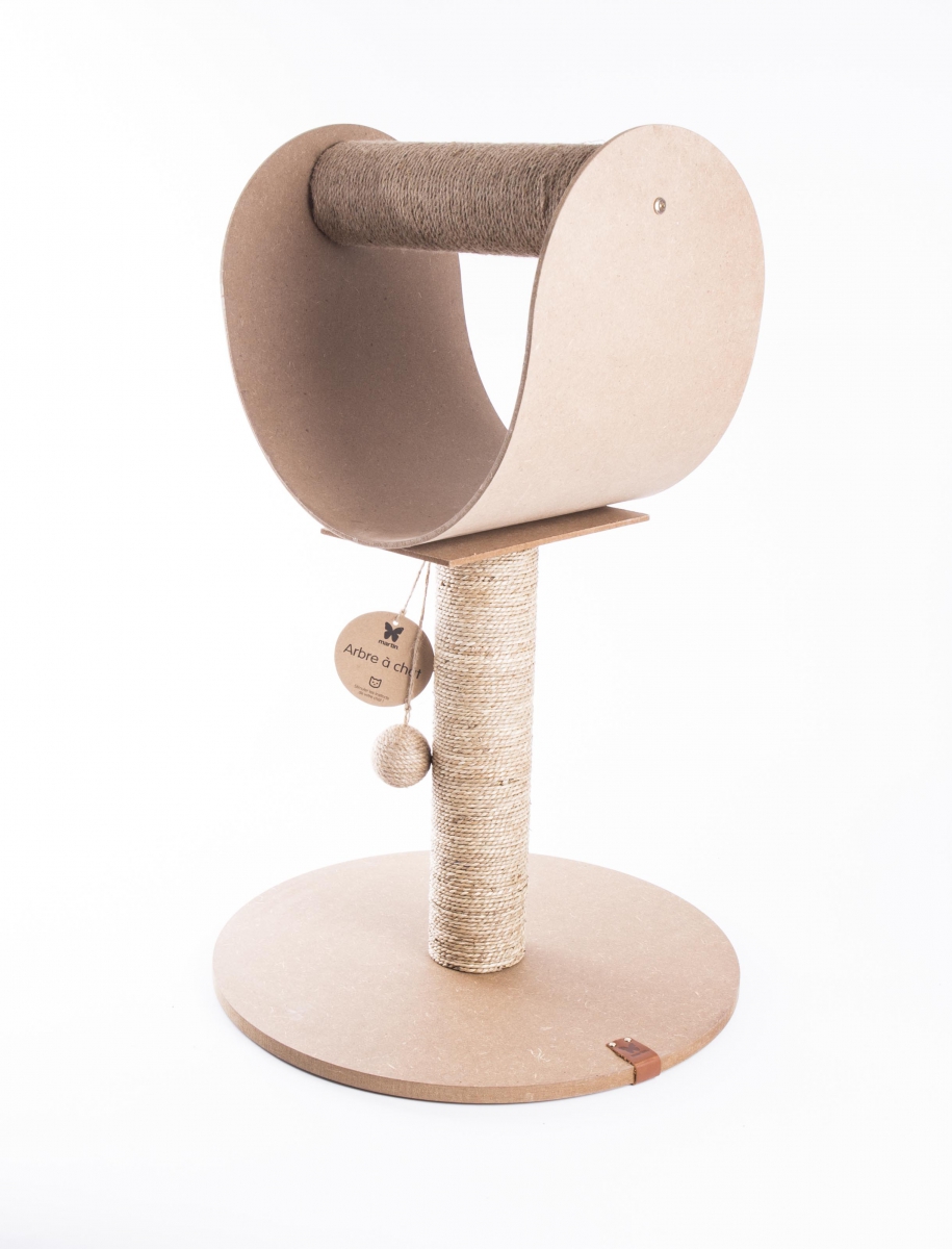 The C Horizontal cat tree has a sturdy, stable 48 cm wooden base. Its smooth surface is easy to clean. It features a 35 cm Sisal post with a ball to encourage playtime. This post is ideal for your cat's claws, protecting your home. At the top of the tree, horizontally, a 40 cm Papyrus post and a wooden resting area offer an ideal place to play or rest. Dimensions: 48 x 48 x 76 cm