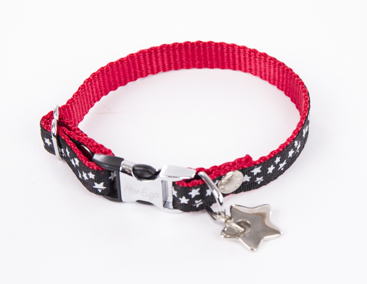 Discover the Star Collection dog collar, the perfect accessory for combining style and safety. This chic collar features braids with a star motif sewn onto sturdy nylon webbing, embellished with double-headed rivets and a durable metal self-locking buckle. The star pendant adds a touch of elegance.