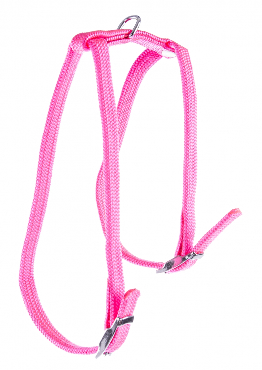 Harnais nylon tubulaire uni pour chat - Rose Fluo