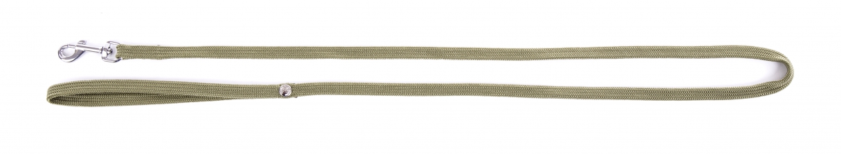 Tubular nylon leash with carabiner hook.