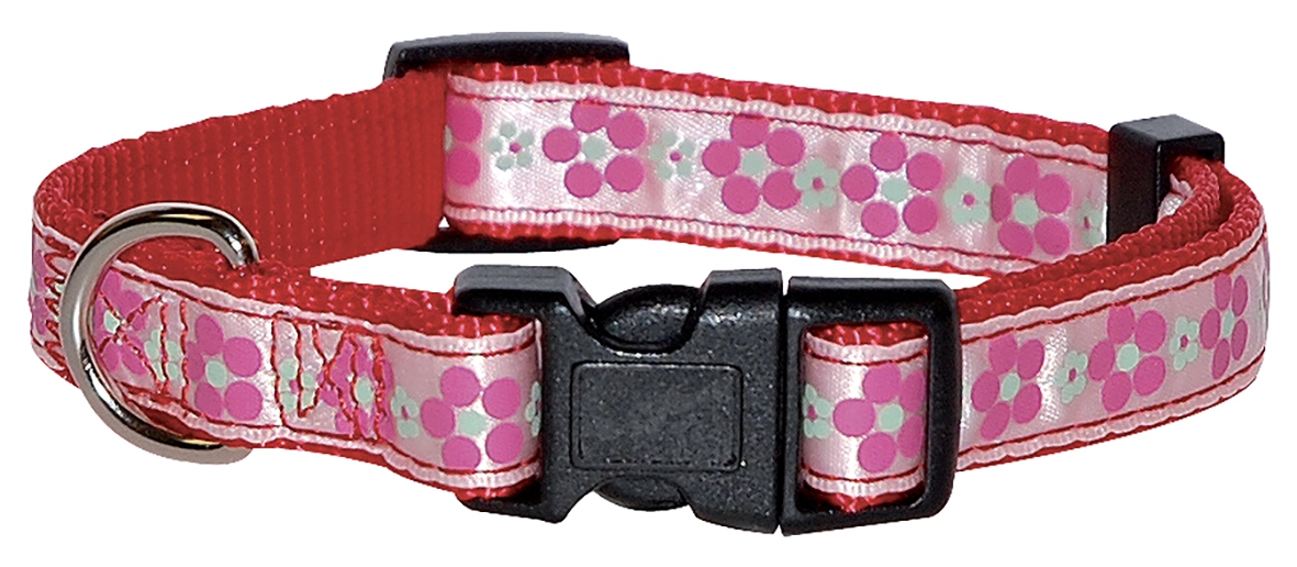 Meadow red dog collar - Vivog - Lenght 35 to 55cm -width 20mm