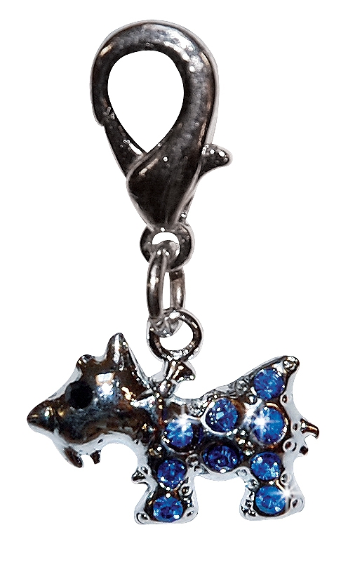 Terrier dog pendant set with blue rhinestones 2,0cm