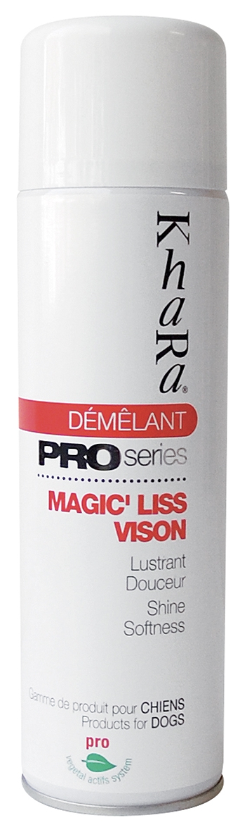 “Magic Liss”, puissant démêlant pour fourrures fines et légères. Aide efficacement au démêlage, évite le feutrage et désodorise sans graisser le poil.