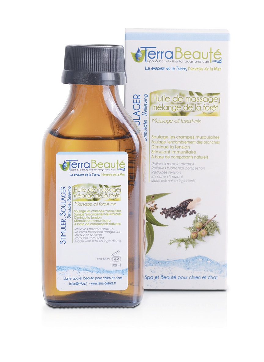 L'huile de massage au mélange de la forêt pour chien et chat soulage les crampes musculaires. Soulage l’encombrement des bronches, la tension et autres problèmes connexes. Stimulant immunitaire. 100ml.
