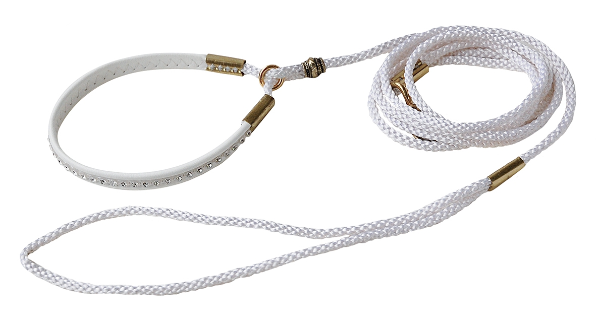 Laisse de présentation en rayonne (viscose) blanc avec strass