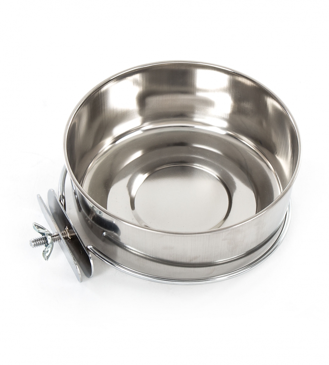 En inox, accroche en métal, très résistant, adapté pour les cages de transport métalliques