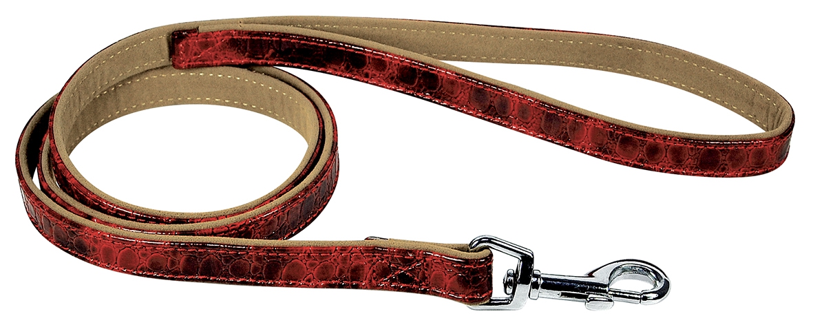 • Très belle laisse fantaisie imitation croco rubis double piquée, intérieur effet cuir “daim”