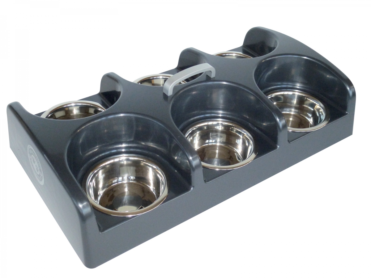 Weanafeeda a été développée par un vétérinaire avec les conseils d’éleveurs reconnus pour résoudre les problèmes liés à l'alimentation d'une portée de chiots à l'étape de sevrage. Caractéristiques et avantages : Facilite le transport de plusieurs gamelles en une seule fois et à une main, les différents compartiments permettent de s'assurer que chaque chiots s’alimentent en quantité suffisante, permet de donner des médicaments ou compléments alimentaires individuellement aux chiots selon leurs besoins, Wanafeeda est léger, stable, résistant et facile à nettoyer. Dimensions : hauteur : 17 cm, largeur 40 cm, Longueur : 70 cm. Contenance des gamelles 750 ml