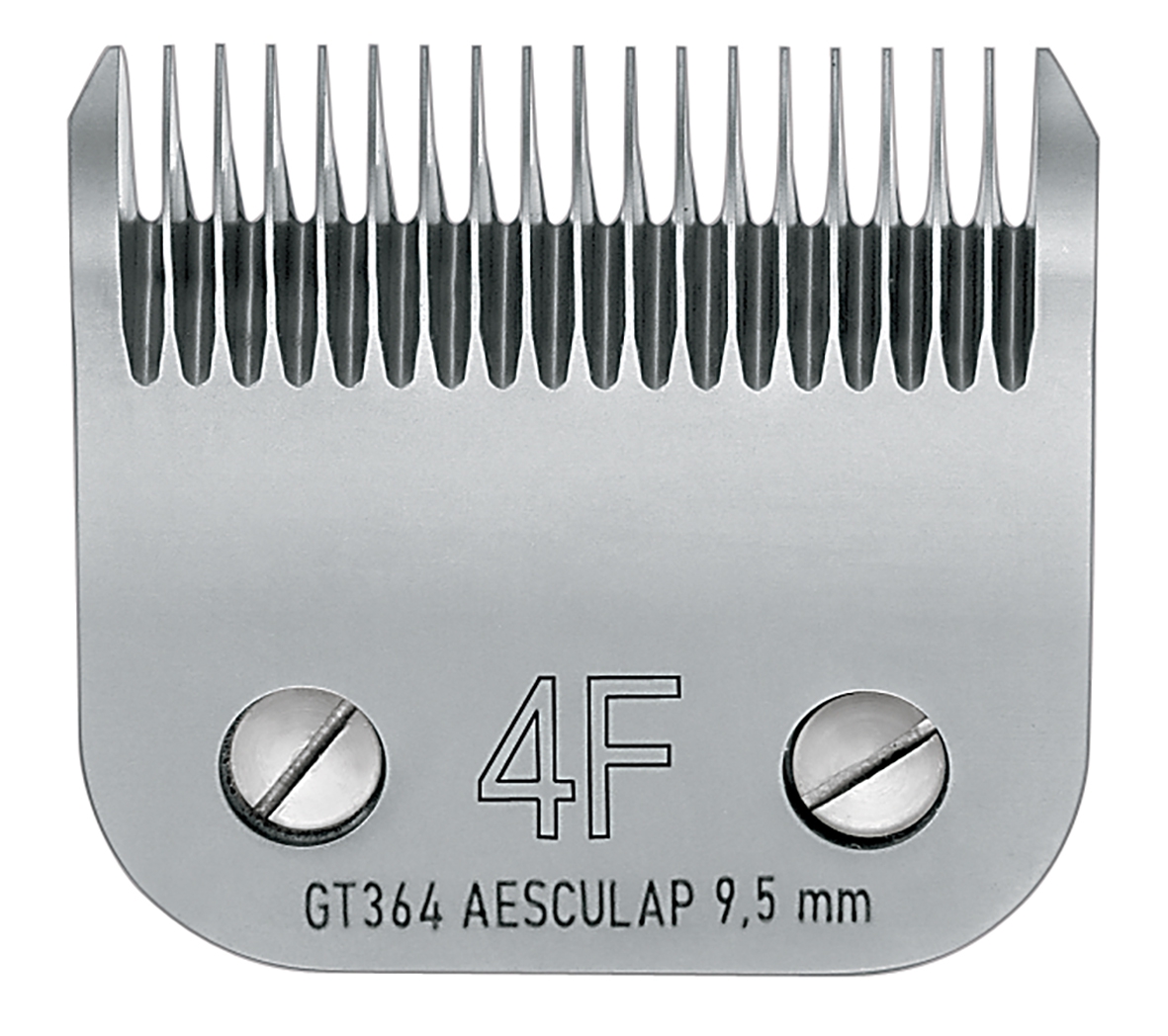 Le peigne Aesculap Clip N° 4 est souvent utilisé pour le dos, le corps et les pattes. Sa hauteur de coupe est de 9,5mm. Cette lame est de type coupe longue. F signifie Finition et cela permet un joli fini (pas de marque de tondeuse). Elle est utilisable sur toutes les tondeuses de type système Clip.
