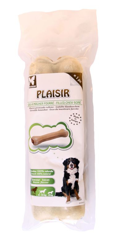 • Plaisir offre une large gamme d'os à mâcher de qualité premium, aux goûts variés (nature, poulet, boeuf, bacon) pour une hygiène bucco-dentaire renforçée.