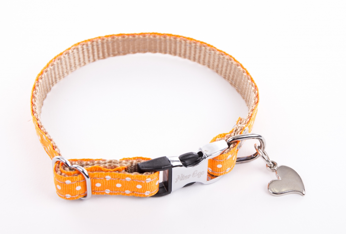 Collier pour chien nylon pois orange - 1 x 17 à 27 cm