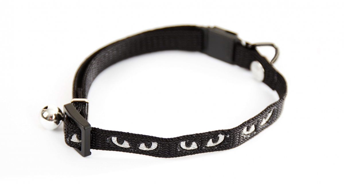 Collier pour chat en nylon rose avec motifs yeux argentées