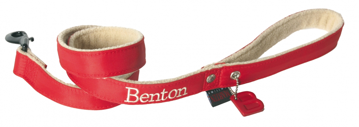Nylon doublé de polaire. Médaillon Benton. Mousquton carabine laqué noir. Boucle rapide.