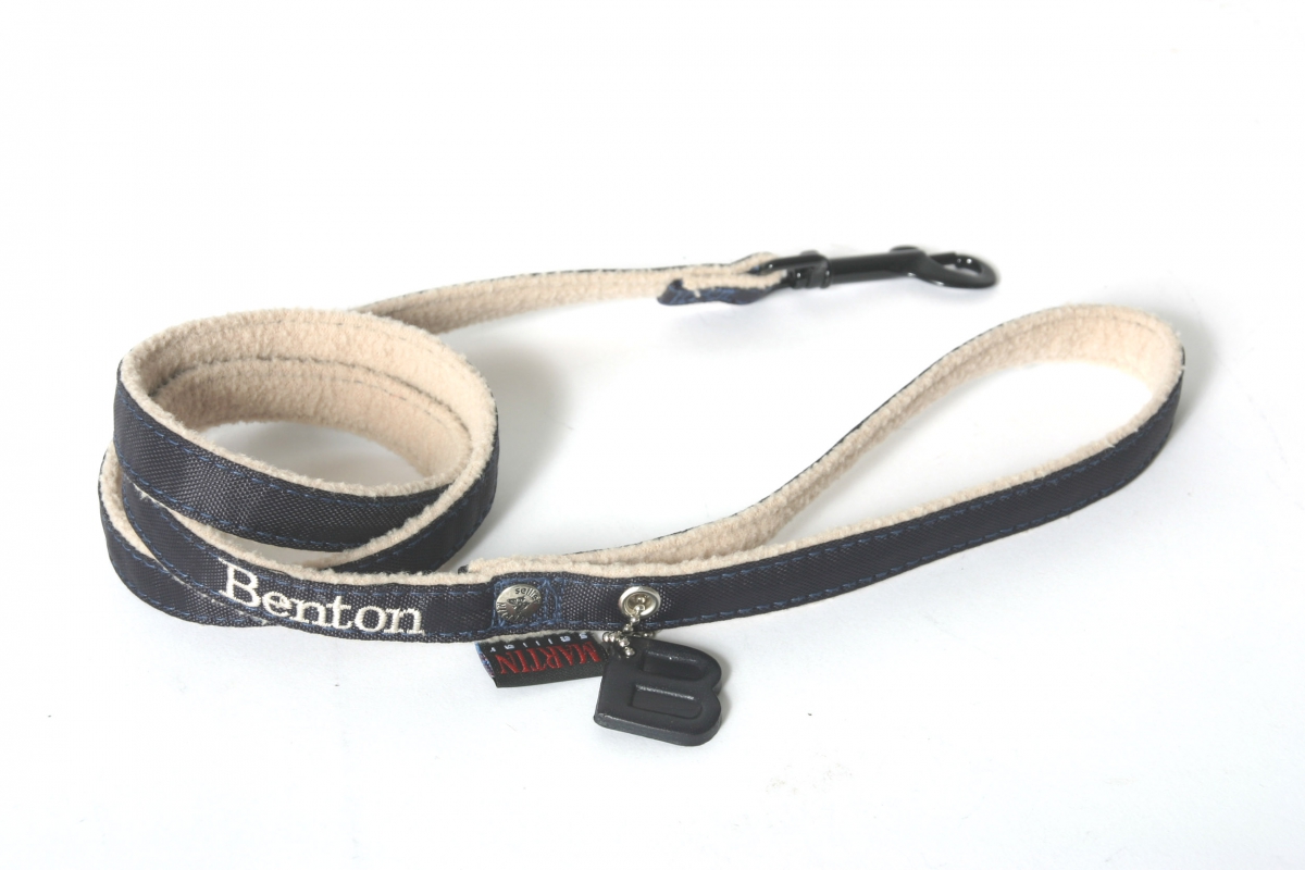 Nylon doublé de polaire. Médaillon Benton. Mousquton carabine laqué noir. Boucle rapide.