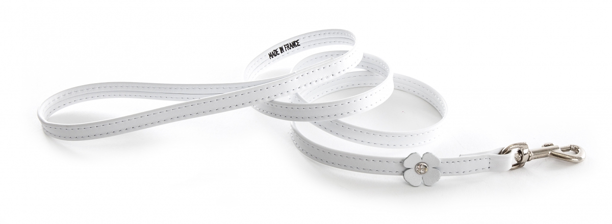 Laisse cuir blanc pour chien - cuir fantaisie trèfle peausserie