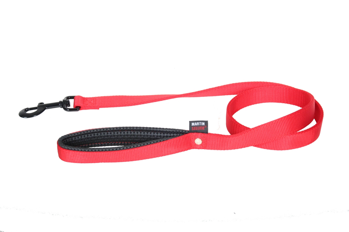 Laisse double épaisseur pour chien en nylon rouge - larg 25mm Long 60cm