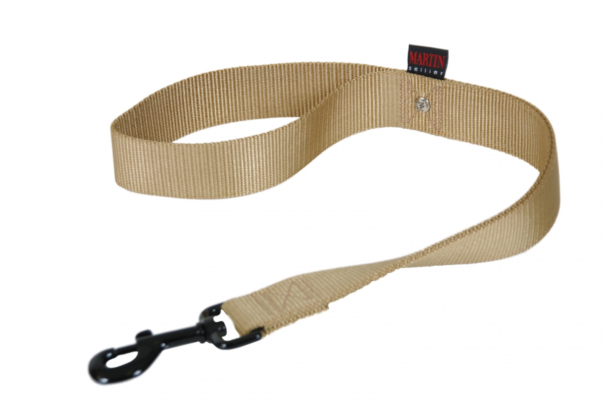 Laisse double épaisseur pour chien en nylon beige - larg 25mm Long 60cm